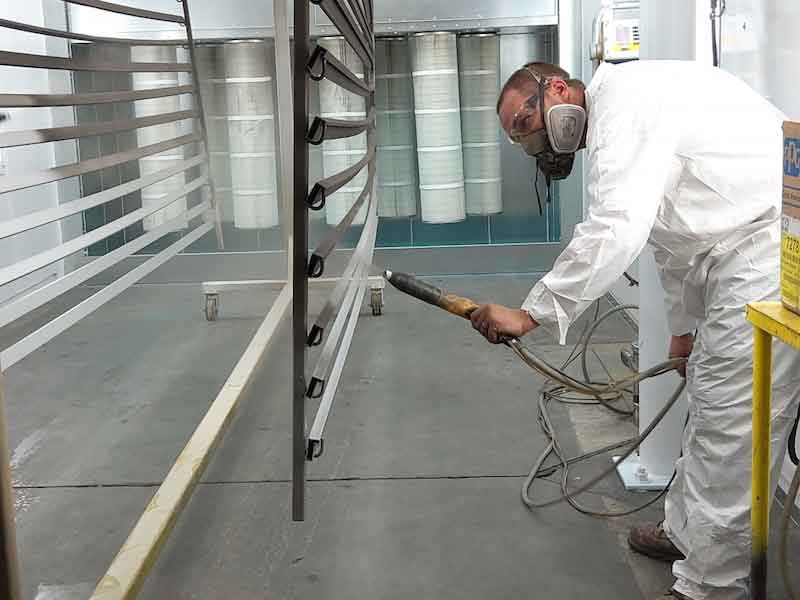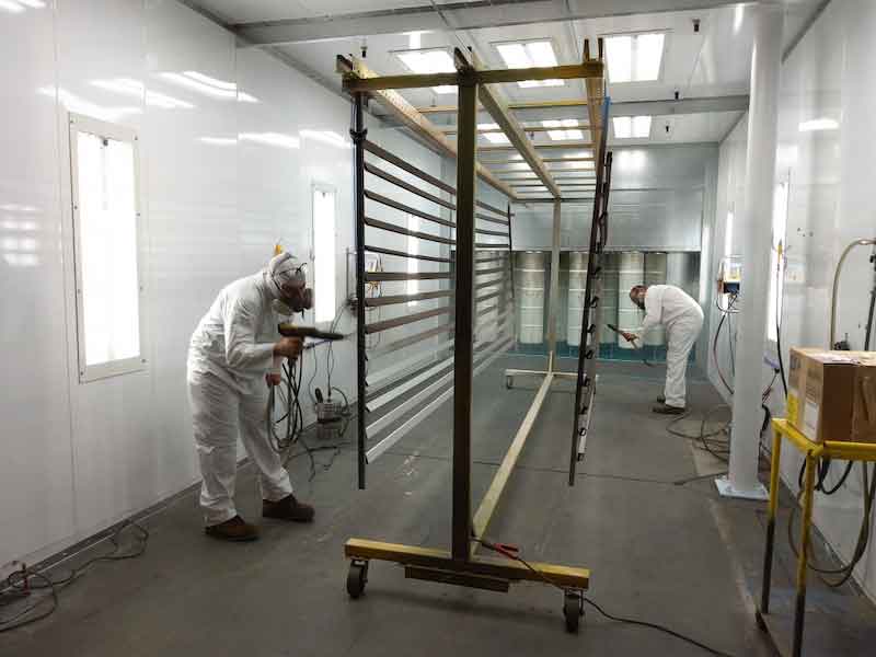 While Procoaters specializes in high-volume fabricated, machined, and cast parts for the furniture and metal fab industries, DJ Powder Coating takes on batch work with two ovens (22.5-foot by 8-foot by 8-foot, and a 15-foot by 8-foot by 8-foot), a media blast room, and pretreatment room.