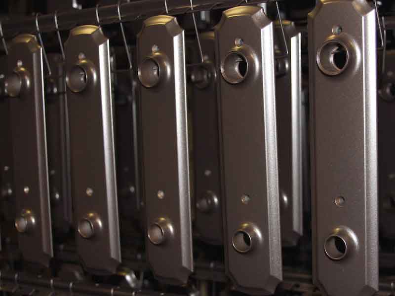 DJ Powder Coating partnered with Procoaters on using a Decoral finish on dozens of sets of doors used at a local prison.“It definitely is a learned art of how to apply the powder to get the patina look,” Denny says. “I do have an artsy side to me, and it takes some practice. But the result is really gorgeous, and there’s not a lot of facilities around that can do it.”
